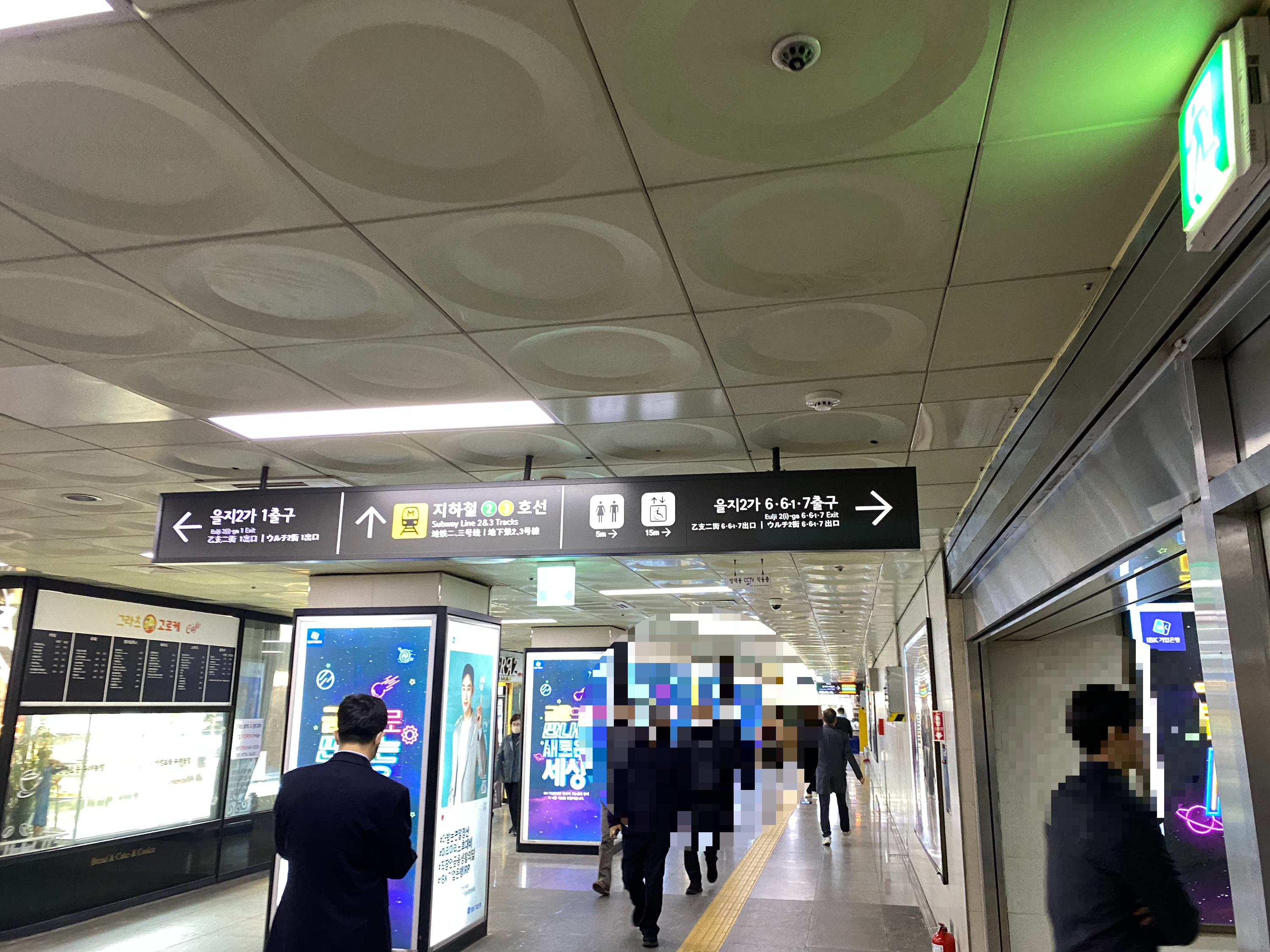 2호선 을지로 입구역과 을지로 3가역이 연결된 지하 통로에서