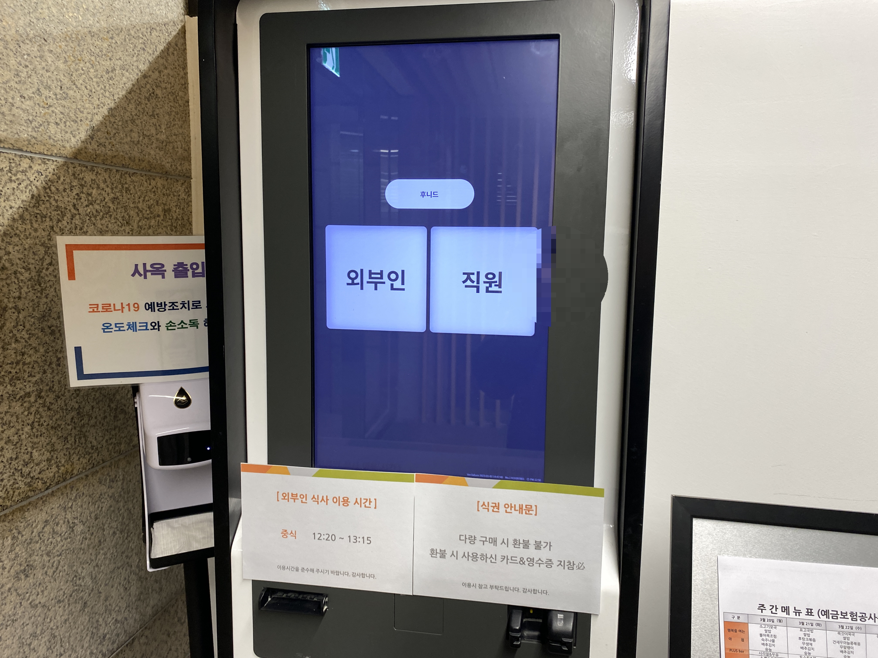 외부인을 눌러 식권을 발권하고 안으로 들어가면 됩니다.