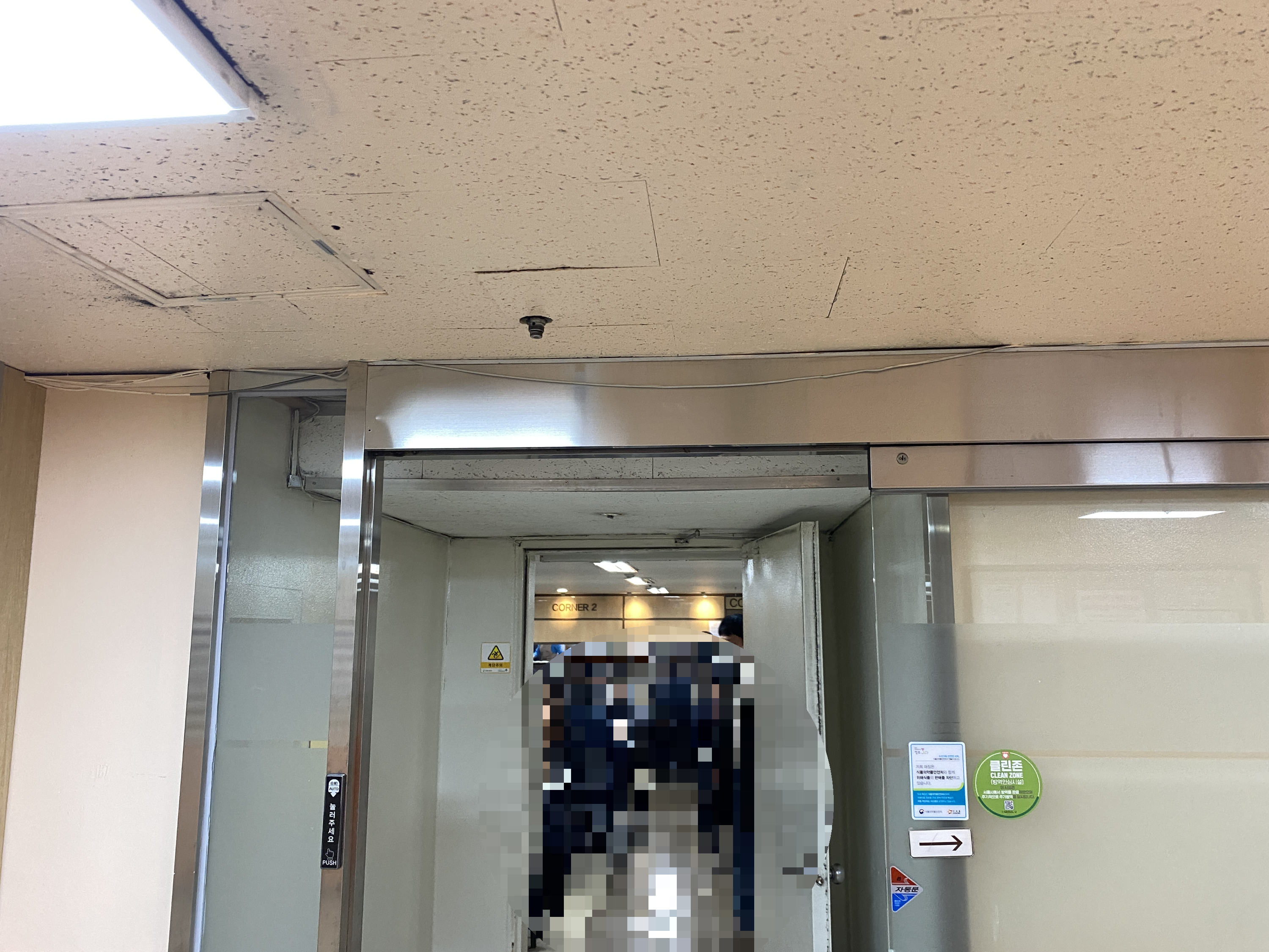 정문 쪽 중앙에 있는 4대 엘레베이터를 타셔야 지하 2층으로 가실 수 있습니다.