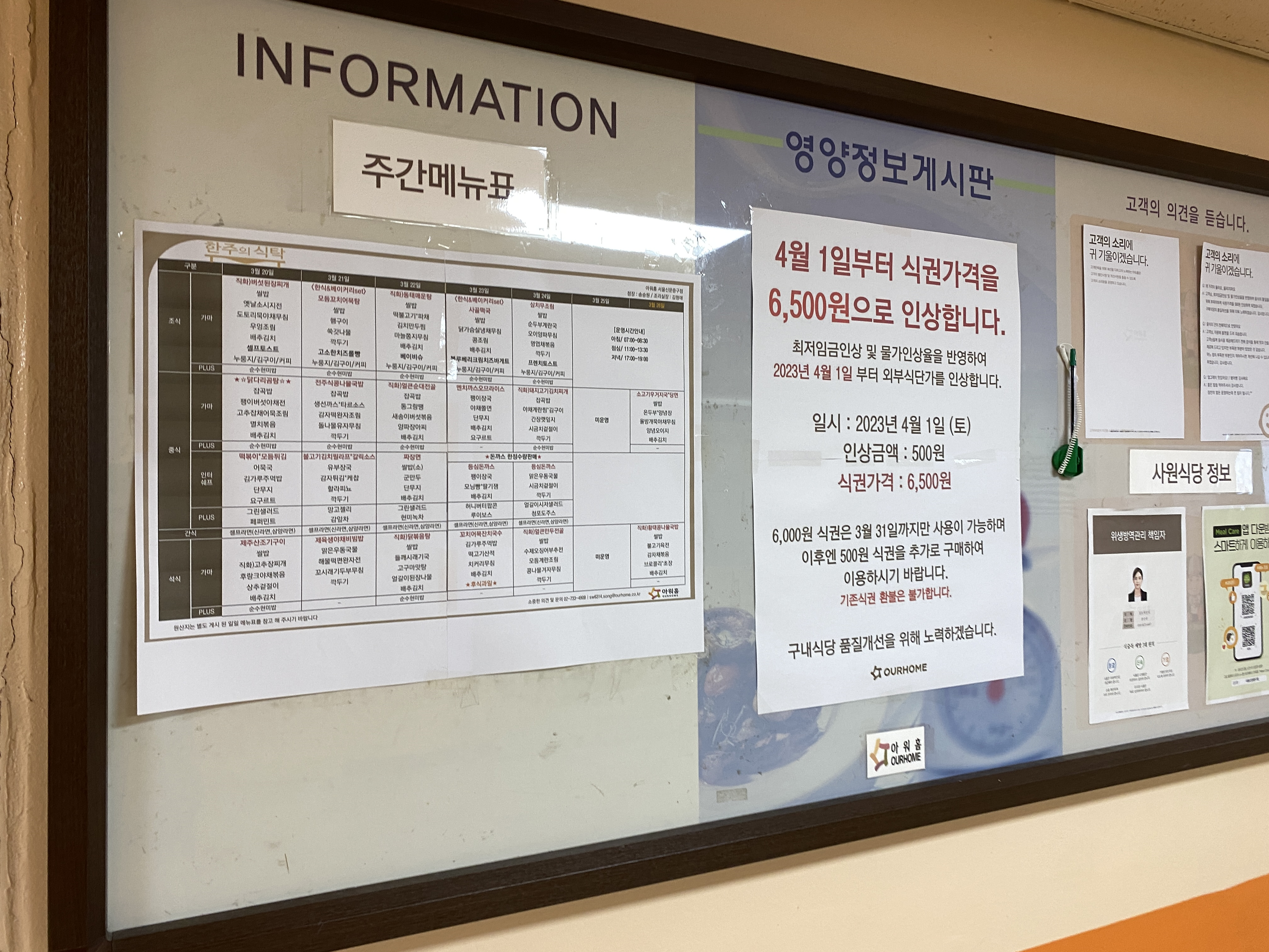외부인 식사는 현재 6,000원인데 4월부터는 6,500원이라고 하네요.