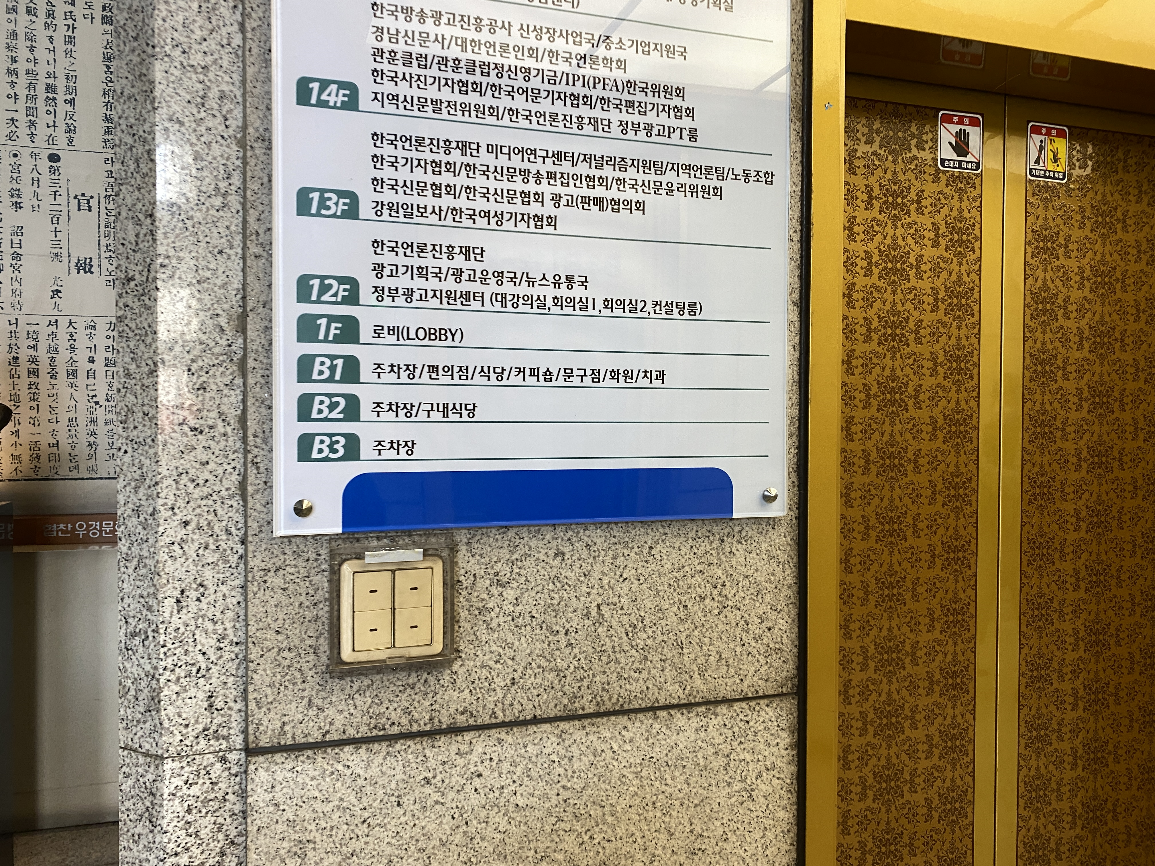 프레스센터 입구로 들어와 엘레베이터를 타시면 됩니다.